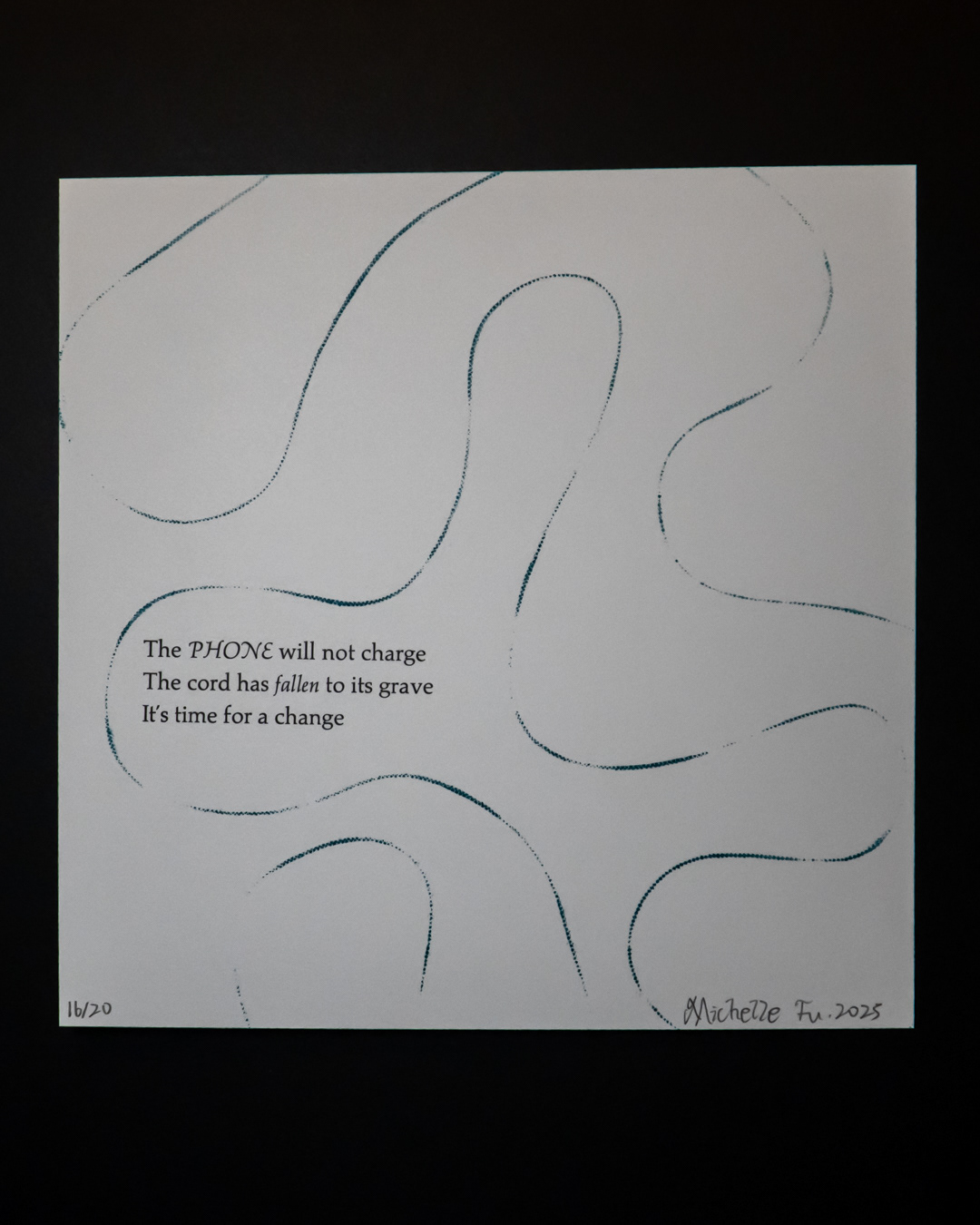 Letterpress printed poster in memory of all my broken charging cords.